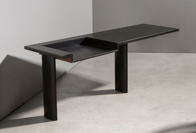 LE CORBUSIER (1887-1965), AND BALKRISHNA VITHALDAS DOSHI (BORN 1927) CONSOLE DESK, CIRCA 1960 black stained wood height 30in (76cm); width 74 1/4in (188.5cm); depth 27 1/2in (70cm)